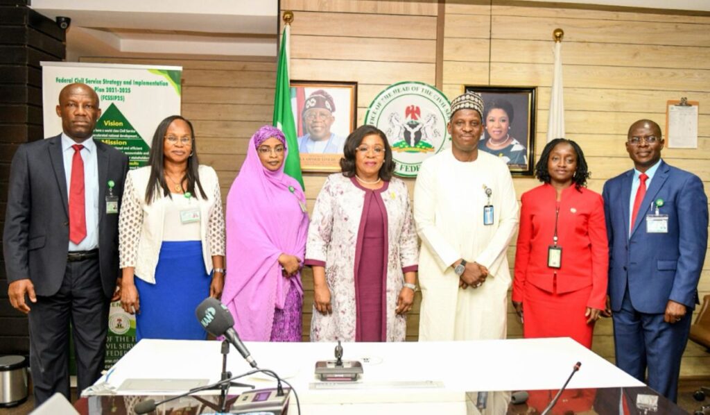 Head of the Civil Service of the Federation, Mrs. Didi Esther Walson-Jack, OON, mni (Middle), Managing Director, News Agency of Nigeria (NAN), Mallam Ali Muhammad Ali (3rd Right), Permanent Secretaries; Dr Deborah Odoh, SPSO, (2nd Right), Mrs Fatima Mahmood, CMO, (3rd Left). Permanent Secretary, CSO Kalba Usman Danjuma (Ist Right), Permanent Secretary, SDO, Mr Chinasa […]